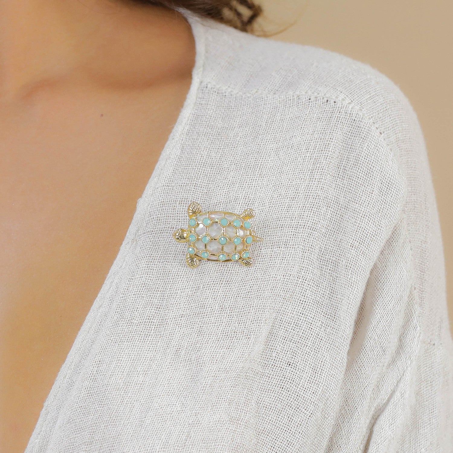 La broche "Summer" joue la carte plage chic avec élégance. Coquillage délicat, perle lumineuse et détails dorés s’unissent dans un esprit solaire et naturel.