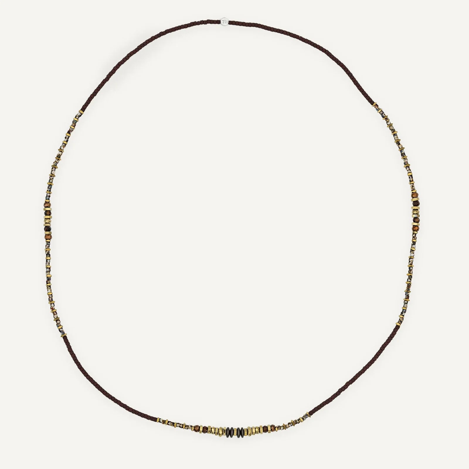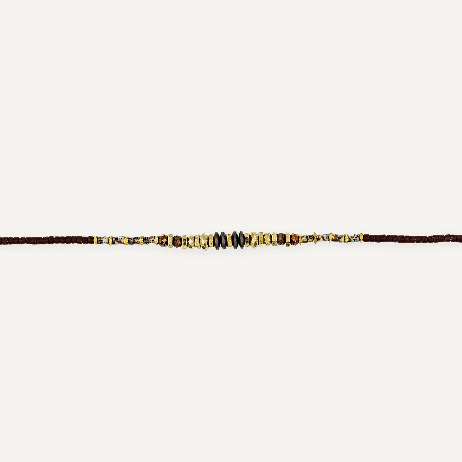 Composé de perles japonaises ultra fines et d'hématite gold et cuivre, ce bijou rappelle le côté gourmand et réconfortant d'un brownie.