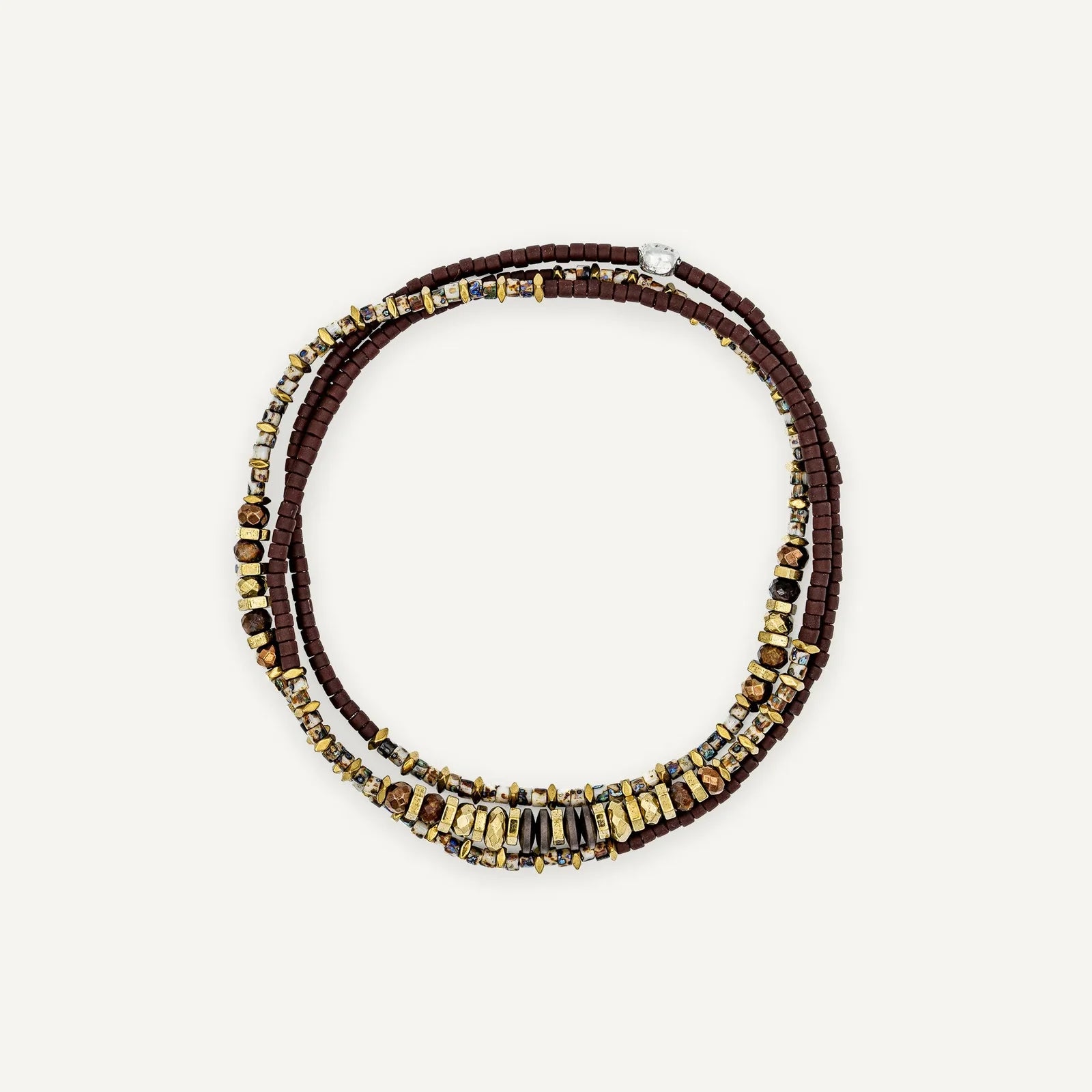 Le BROWNIE 3 de Têtes Blondes est un bijou 2-en-1 pouvant se porter à la fois en collier ou en bracelet 3 tours.