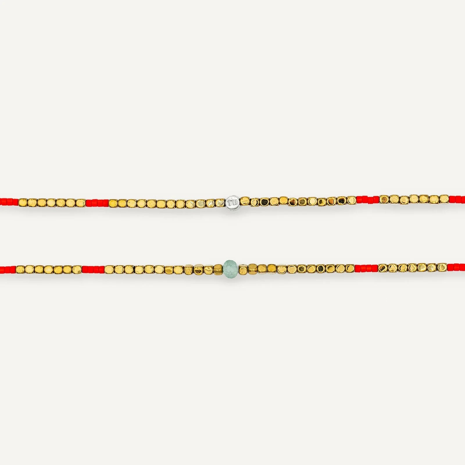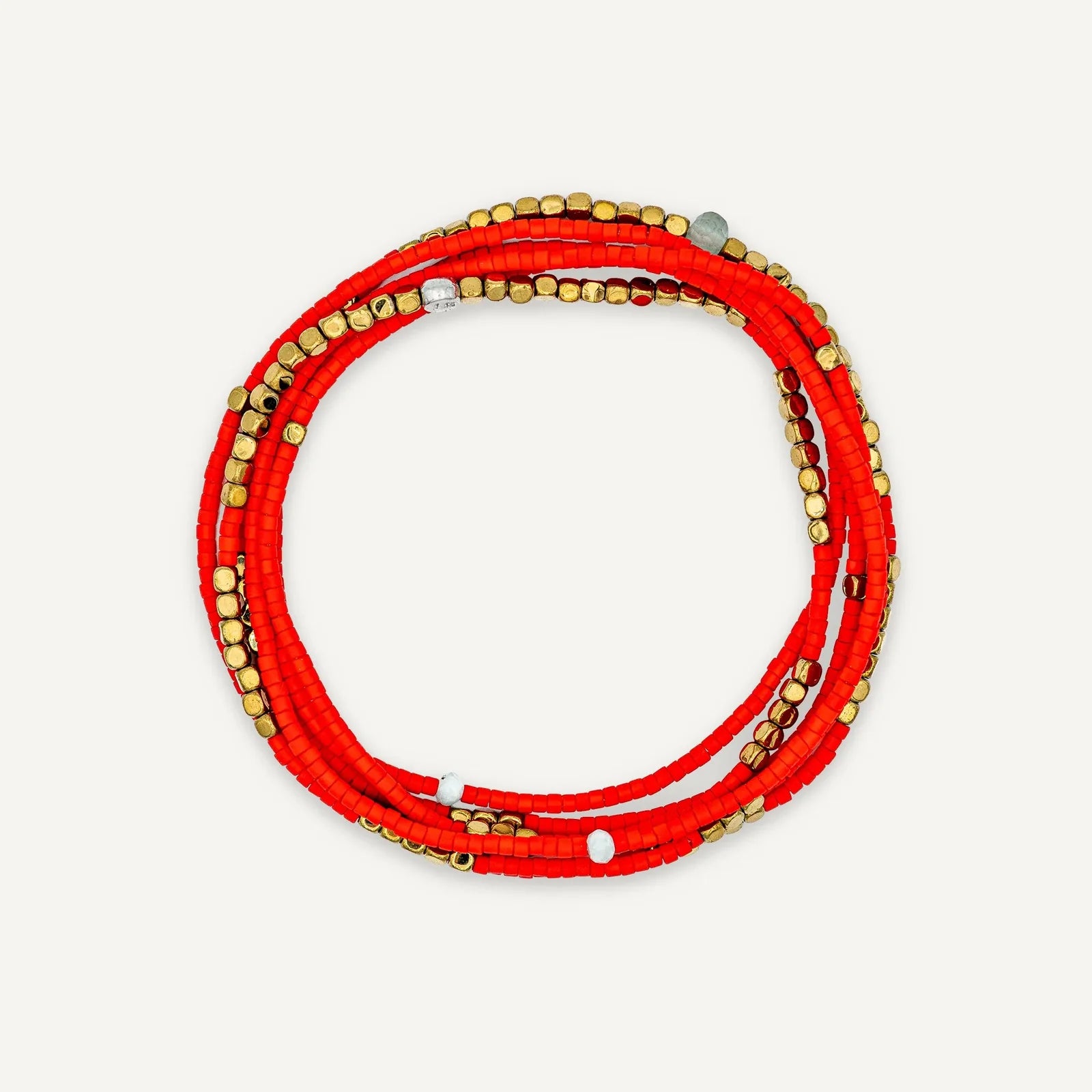 Le COLETTE SLIM 6 de Têtes Blondes est un bijou coloré et scintillant, composé de perles japonaises ultra fines dans un rouge éclatant, sublimées par une pierre centrale d’amazonite.