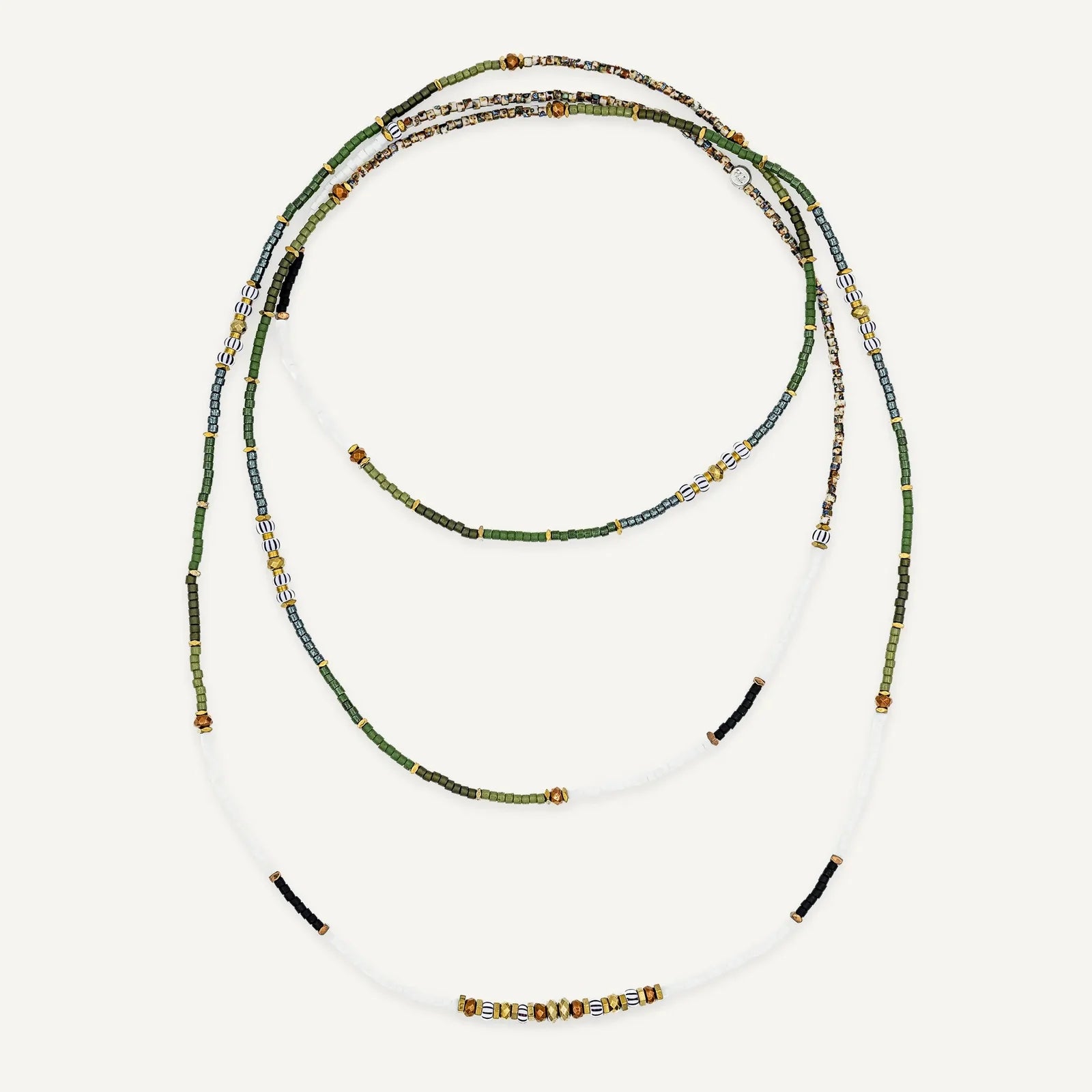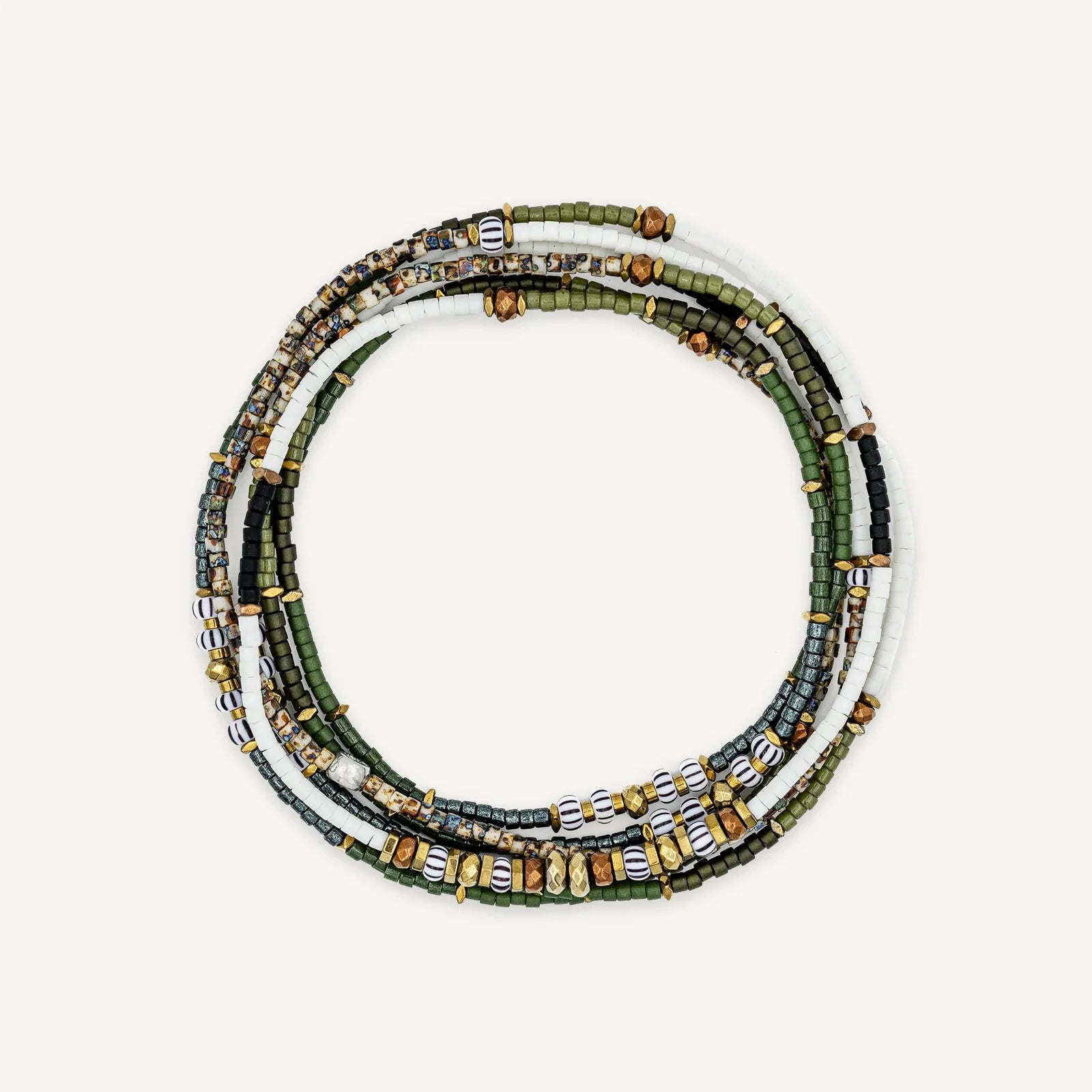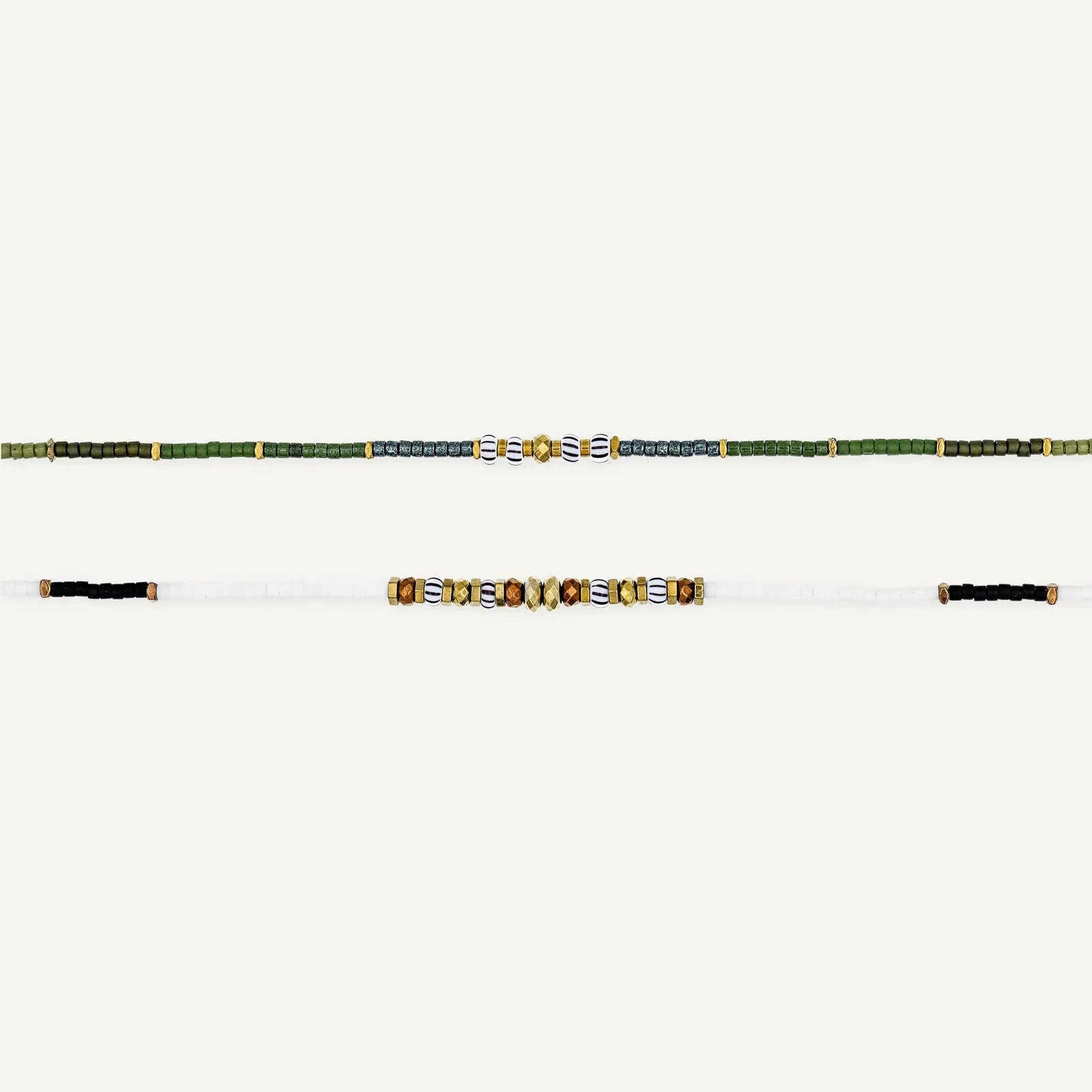 Le PISTACHIO 6 de Têtes Blondes est un bijou 2-en-1 composé de perles japonaises ultra fines dans un camaïeu de vert réconfortant.