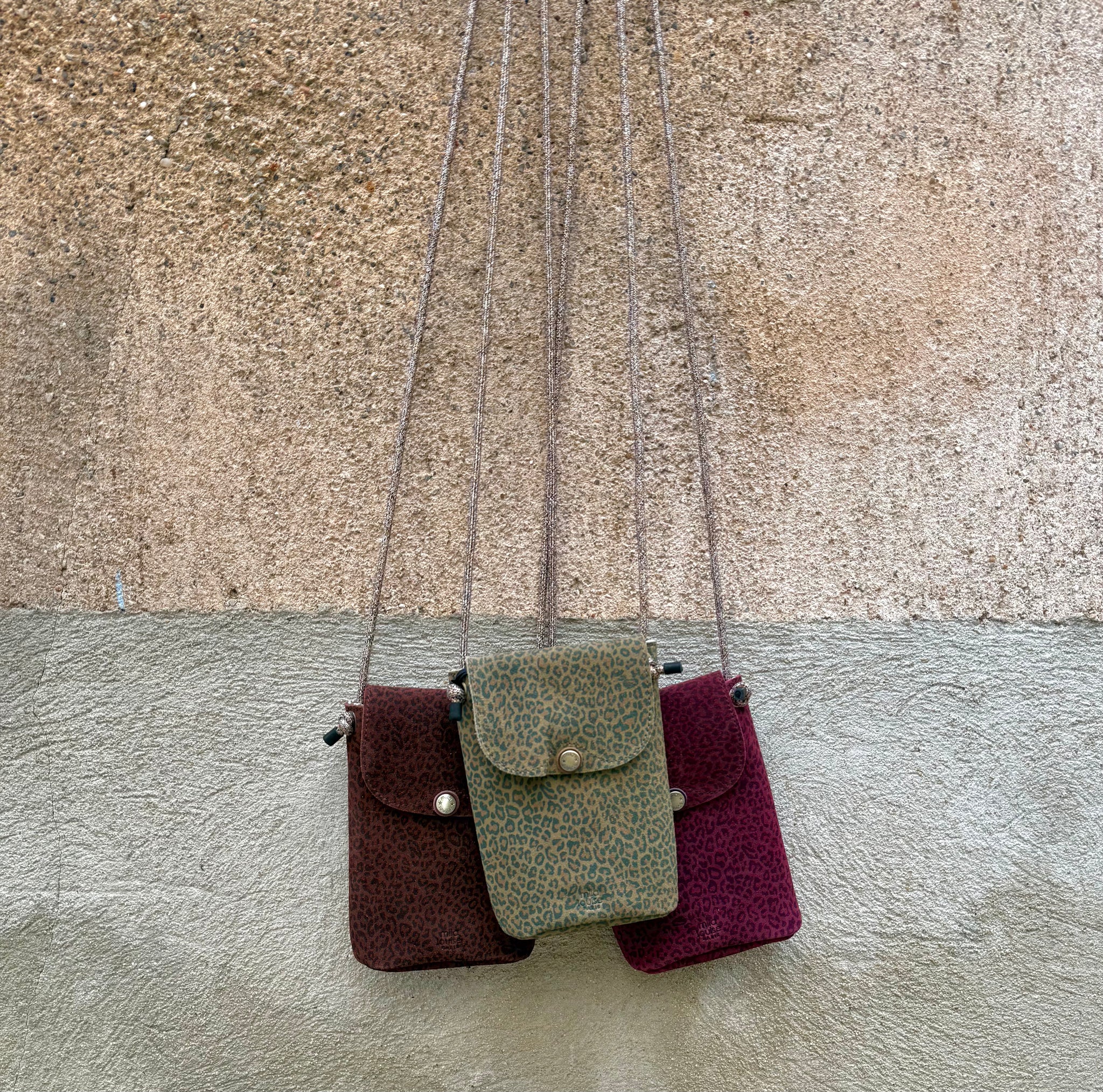 Cette pochette Mila Louise en cuir de vachette séduit par son effet suédé léopard au style tendance et raffiné.